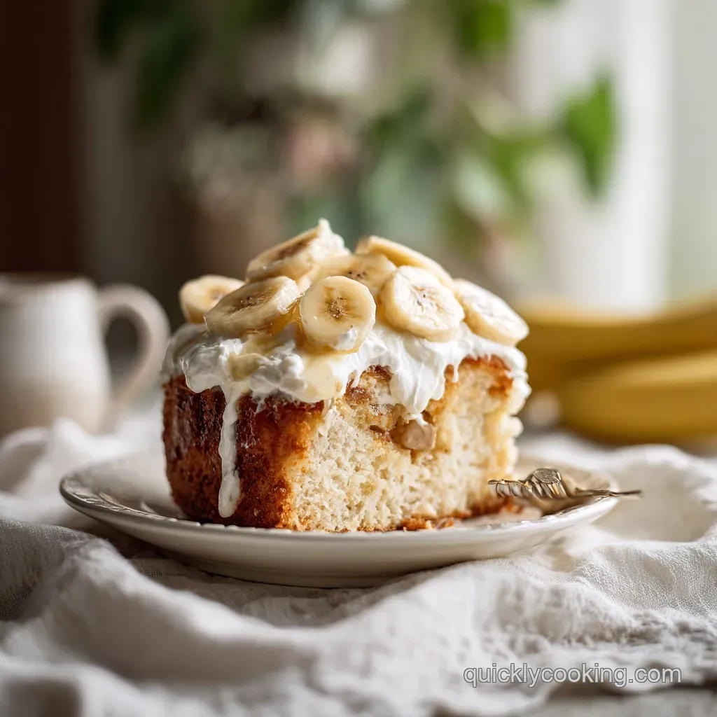 By poking holes into a warm cake, we are creating tiny reservoirs for that liquid gold a mix of sweetened condensed milk and banana cream pudding to seep into. This ensures that every single bite is moist, flavorful, and incredibly lush.