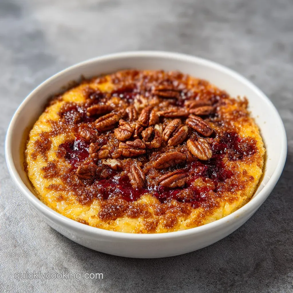 Since this is quite sweet and rich, I love pairing it with something that cuts through the sugar. A dollop of unsweetened whipped cream or a side of fresh raspberries provides a sharp contrast.