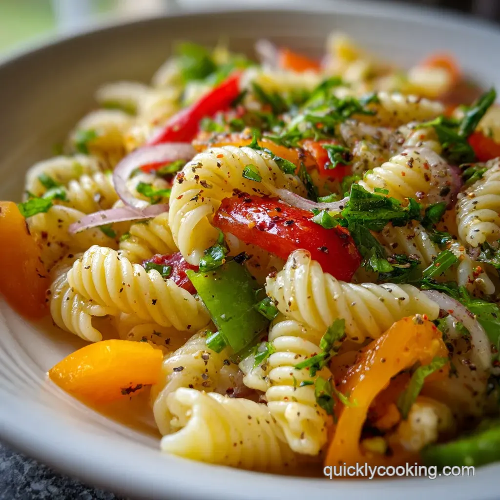 Chef Tip: If you want an even more velvety finish, similar to the technique used in our one pot creamy recipe, try whisking one tablespoon of the pasta cooking water into your Italian dressing before tossing. The residual starch helps the dressing emulsify and cling to the noodles like a dream.